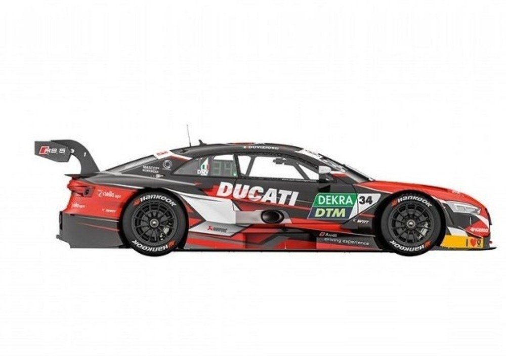 La RS5 sarà rosso-nera e sulla fiancata non mancherà la scritta Ducati. Del resto, anche sulle carene della Desmosedici il logo Audi Sport è presente, visto che entrambi i costruttori fanno parte dello stesso gruppo. Il Dovi ha già provato la RS 5 DTM in due giornate di test al circuito dedicato a Marco Simoncelli la settimana scorsa, dove ha messo assieme 183 giri. Purtroppo, però, non potrà invece avere il suo numero 4, dato che nella serie appartiene già a Robin Frijns, la scelta è quindi ricaduta sul 34.