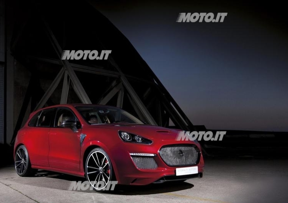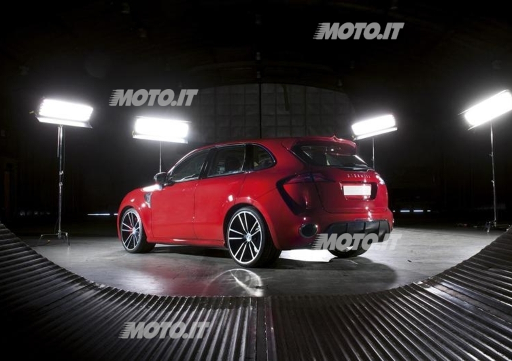 La fiancata è la zona che rivela nella maniera più evidente la derivazione di questo Sport Utility dalla Cayenne e si caratterizza principalmente per i grandi cerchi in lega a cinque razze sdoppiate bicolore da 23 pollici, all’interno di cui spiccano pinze freno verniciate di rosso firmate Eterniti.
