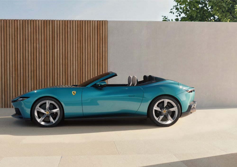 Il progetto parte da un vincolo preciso: preservare le proporzioni e la silhouette dell'Amalfi anche con il tetto aperto, senza i compromessi estetici che spesso affliggono le versioni cabriolet delle coupé. Il risultato, secondo Ferrari, è una vettura che mantiene la stessa identità visiva fluida e minimalista della coupé, con la capote ripiegata che occupa appena 220 mm di spessore, il minimo indispensabile per non sacrificare il bagagliaio.