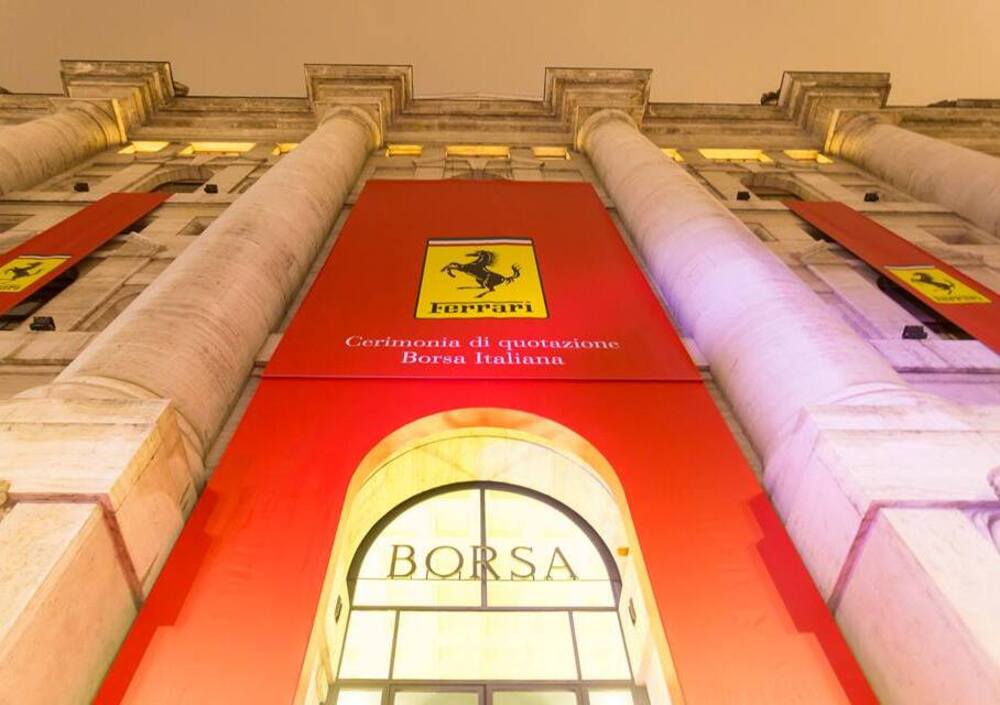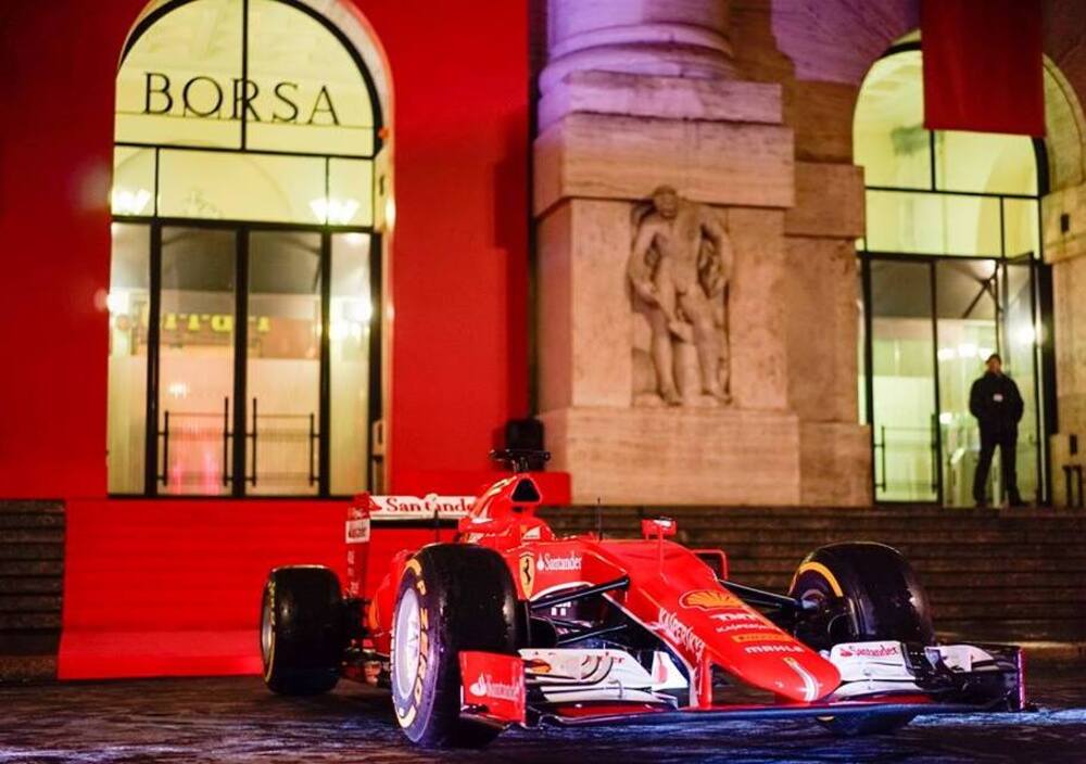 L'aria è quella dei grandi eventi: una schiera di Rosse disposte davanti a Palazzo della Borsa di Milano sancisce l'ingresso nei listini di Borsa Italiana di Ferrari dopo lo sbarco al NYSE avvenuto in ottobre.