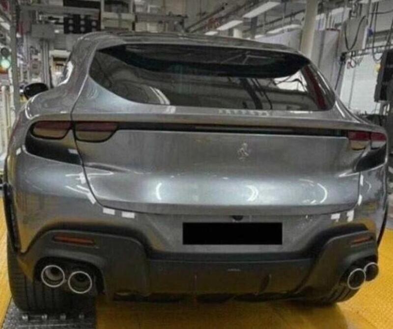 In particolare si nota un'altezza della carrozzeria non troppo accentuata, sicuramente più bassa di una Lamborghini Urus e altri dettagli come i pronunciatissimi passaruota con prese d'aria le gli estrattori appena sotto lo specchio retrovisore. Anche i brancardi sono ben sottolineati e contribuiscono a creare una linea apparente alta da terra, quasi inarcata al centro, molto atletica. Ampie prese d'aria anche nella zona anteriore per il raffreddamento di un motore su cui ancora si vagheggia, che inizialmente dovrebbe essere il 12 cilindri ma in seguito potrebbe arrivare anche il turbo V6 ibrido della 296 GTB, come è successo per la GTC4 Lusso.