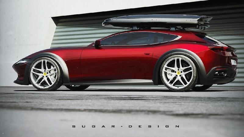 Per l'occasione, il designer sugardesign_1 ha cercato di interpretare la Roma in una Cross Turismo, con tanto di Box sopra il tetto dell’auto. La Roma, per questa interpretazione, potrebbe essere ben interpretata e, sicuramente, il V8 che sprigiona 620 Cv potrebbe essere un’ottima accoppiata.