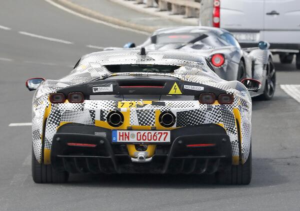 Il cambiamento più evidente, rispetto alla SF90, che emerge dalle foto è il cofano ispirato alla 488 Pista, questa soluzione aerodinamica deriva dalla esperienza di Ferrari in ambito motorsport, introdotta in F1 nel 2008.