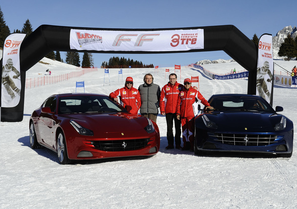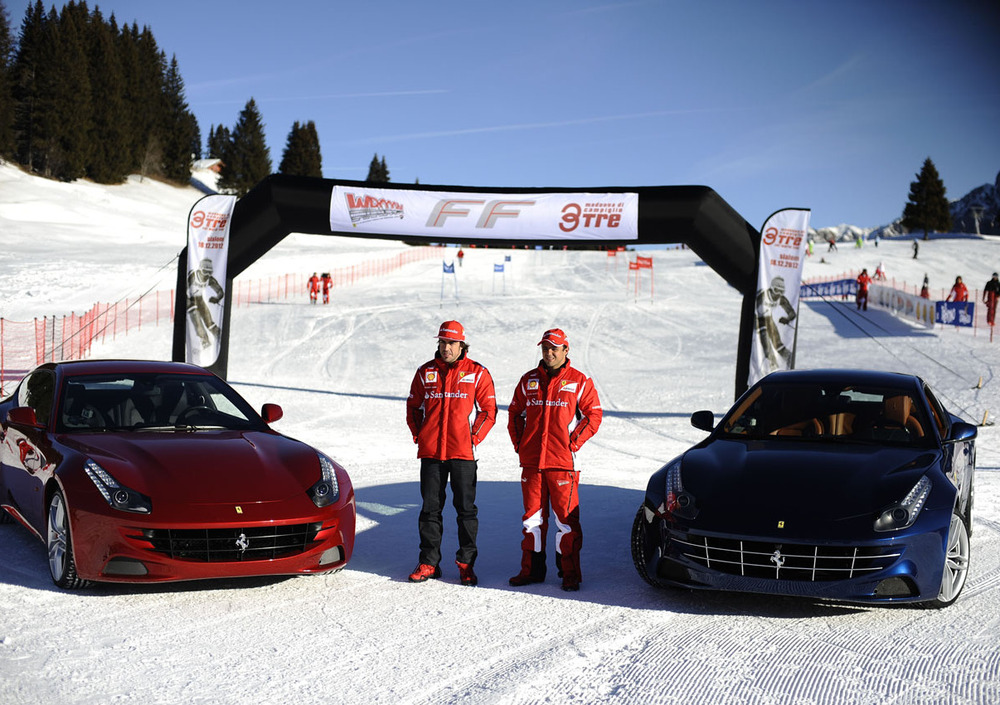 Le nevi di Madonna di Campiglio su cui normalmente si affrontano i campioni dello sci alpino nelle gare di Coppa del Mondo, sono state oggi teatro di uno slalom parallelo alquanto inusuale. I due piloti della Scuderia Ferrari, Fernando Alonso e Felipe Massa, si sono infatti sfidati tra le porte di una pista da sci alla guida di due FF, il rivoluzionario modello a quattro posti e quattro ruote motrici del Cavallino Rampante.