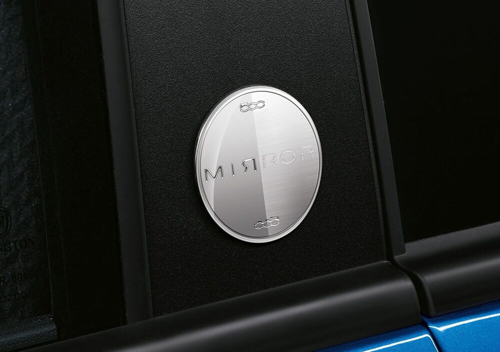 Fanno parte inoltre della dotazione di serie gli specchietti retrovisori esterni cromati e riscaldati, cerchi in lega da 15'', fendinebbia, sensori di parcheggio posteriori, il montante con badge "Mirror" in alluminio spazzolato e livrea Azzurro Italia. La 500 Mirror è anche disponibile in tinta Bianco Gelato, Rosso Passione, Nero Vesuvio e Grigio Carrara.
