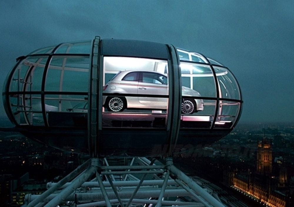 Ieri, puntuale alle 20.00 (ora di Londra), si è “alzata” sul cielo della City la Fiat 500 a bordo di una delle 32 cabine in vetro che compongono il “British Airways London Eye”.