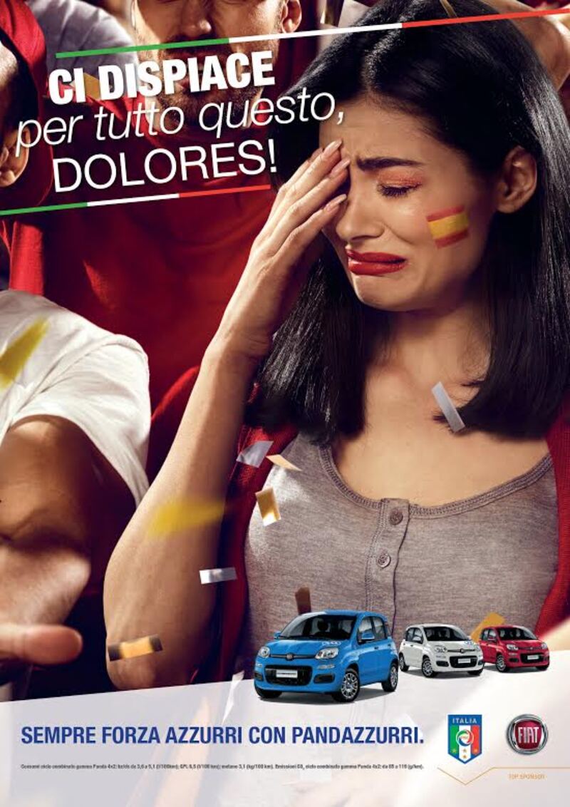 Anche Fiat a suo modo ha voluto festeggiare e celebrare l'impresa della Nazionale pubblicando questa foto, in cui ironizza sul risultato che ha visto la nazionale spagnola eliminata dalla competizione.