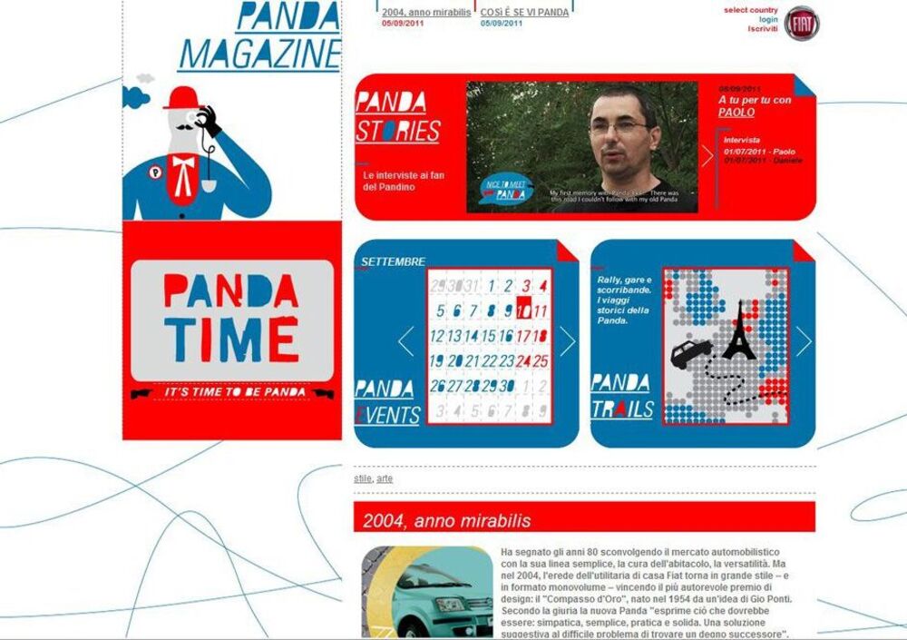 Non un sito di prodotto, ma un progetto di comunicazione sia nel concept che nel linguaggio. Fiatpandatime.com è una community aperta non solo ai fan, ma a chiunque si riconosca nello spirito di un'automobile che da trent'anni è da tutti conosciuta come sinonimo di semplicità, funzionalità e sostanza.