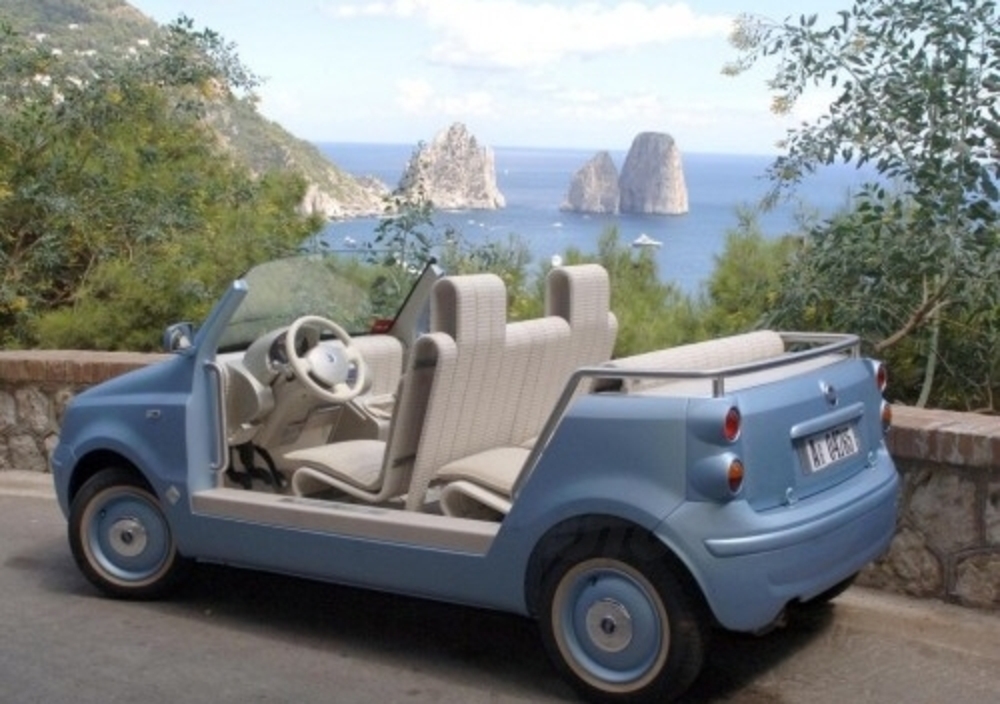 Disegnata dal Centro Stile Fiat e realizzata dalla Stola, la vettura sarà destinata a un esclusivo servizio di cortesia: infatti tutti i turisti VIP che raggiungeranno Capri saranno accompagnanti verso le loro mete sull’originale vettura. Sospesa tra mare e cielo nel golfo di Napoli, da secoli rinomata località, Capri è da sempre sinonimo di turismo di classe e di quella “solarità” tutta italiana che è lo scenario ideale per la nuova vettura Fiat.
