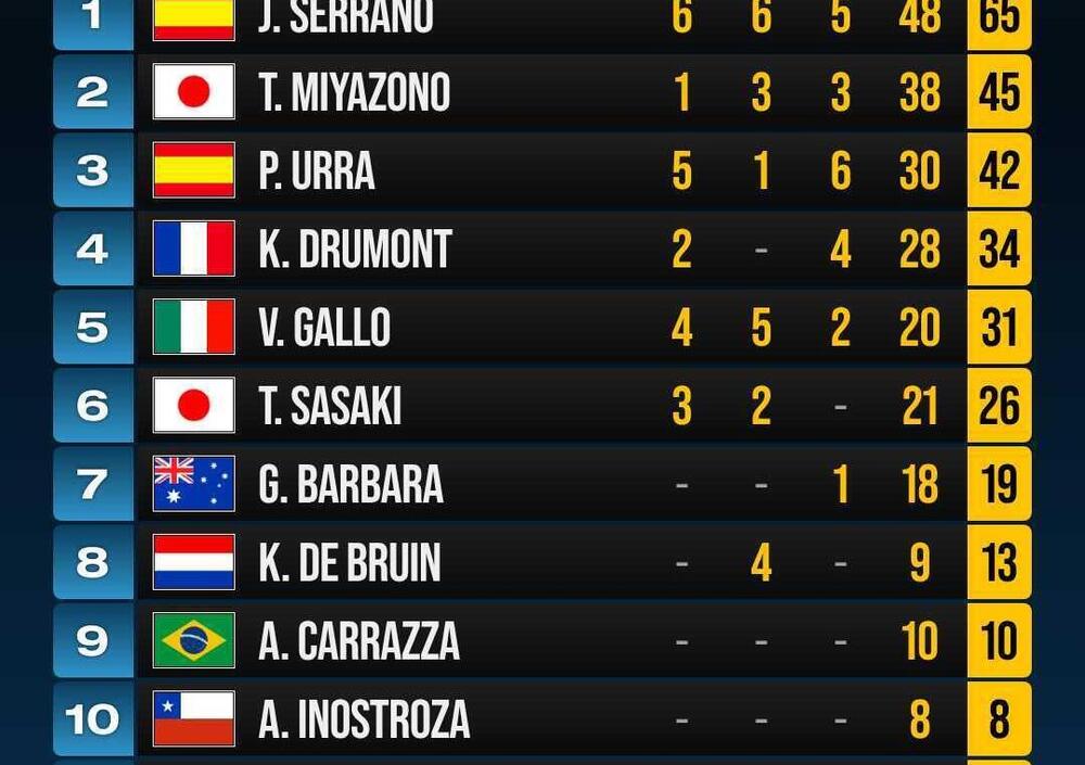 La classifica della Nations Cup dedicata ai piloti invece preannunciava il successo di Jose Serrano in testa alla classifica con 2 primi posti ed un 3 posto. Il nostro Valerio Gallo (Honda) era in terza posizione.