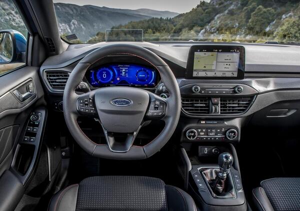 Come ci si poteva aspettare, anche la nuova Ford Focus diventa ibrida. Il motore piccolo motore 1.0 litri EcoBoost Hybrid è lo stesso che monta la Puma: il blocco a benzina è supportato da un motore elettrico con tecnologia BISG, che funge quindi anche da alternatore e motorino di avviamento. La batteria da 48 V è stata montata sotto il sedile del passeggero e, oltre a migliorare l'efficienza del powertrain del 17%, offre interessanti funzionalità come lo star&stop in movimento. Inoltre, per abbattere ancora di più i consumi, quando non è richiesta potenza, alcuni cilindri vengono disattivati.