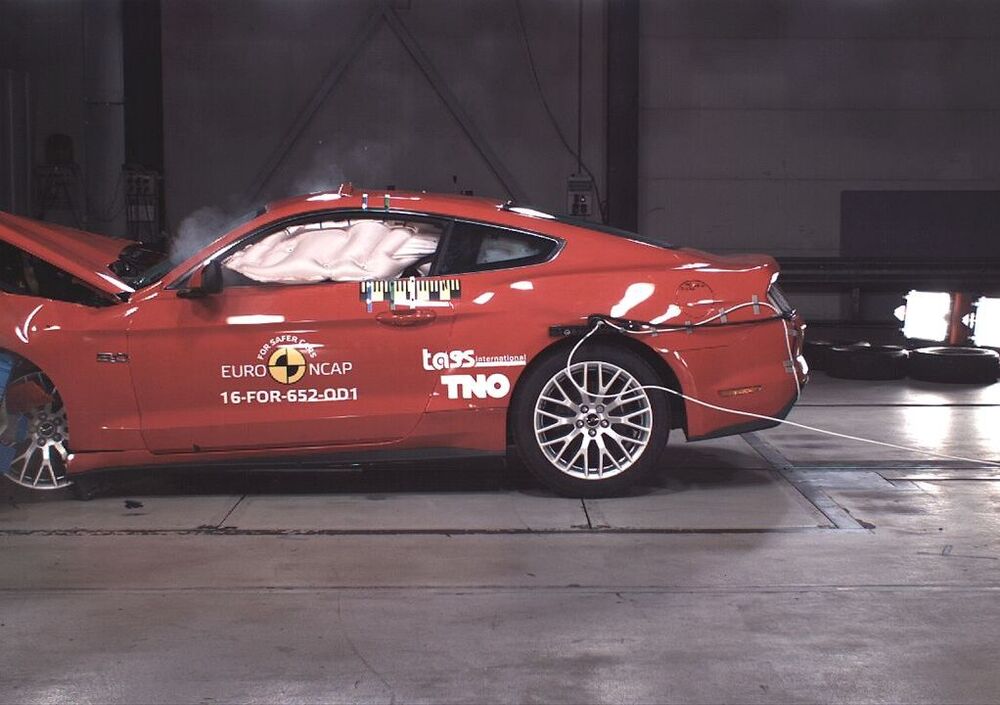Alla prova dei crash test la Mustang ha infatti rivelato una insufficiente pressione di gonfiaggio di entrambe gli airbag anteriori ed una insufficiente tensione delle cinture di sicurezza soprattutto per i passeggeri di statura maggiore, che in caso di impatto frontale potrebbero urtare la plancia con più violenza del tollerabile. Insufficiente anche il livello di protezione offerto dalle cinture posteriori, che non sono dotate di pretensionatore e di limitatore di carico, quindi in caso di impatto possono potenzialmente far scivolare gli occupanti o procurare lesioni alla zona del petto. Scarsa anche la protezione dai colpi di frusta offerta dai poggiatesta in caso di impatto posteriore. In compenso, massimo dei punti nei test di impatto laterale. Il punteggio totale nella protezione degli adulti è del 72%.