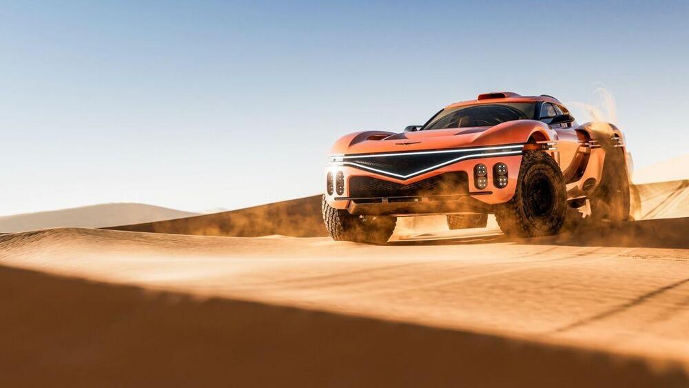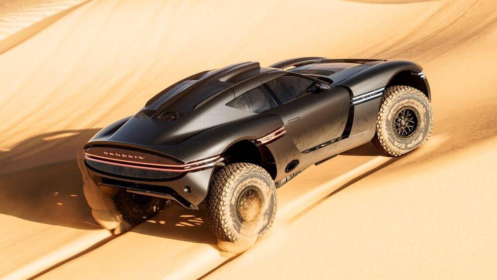 I materiali utilizzati confermano questo approccio pragmatico ma raffinato. Fibra di carbonio, Kevlar e compositi ad alta resistenza convivono per garantire leggerezza, solidità e facilità di riparazione in ambienti estremi. Anche l’altezza da terra generosa e le proporzioni massicce contribuiscono a trasmettere immediatamente la vocazione off-road del veicolo, pur mantenendo quella cura estetica tipica del linguaggio stilistico Genesis.