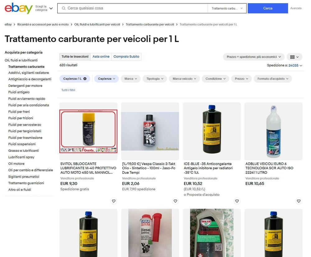 All’interno del grande marketplace, in sezione dedicata all’auto e ai suoi ricambi, si trovano anche gli additivi. Come sempre eBay aiuta molto l’utente permettendo di inserire i dati veicolo o il marchio preferito, trovando le offerte più adeguate.