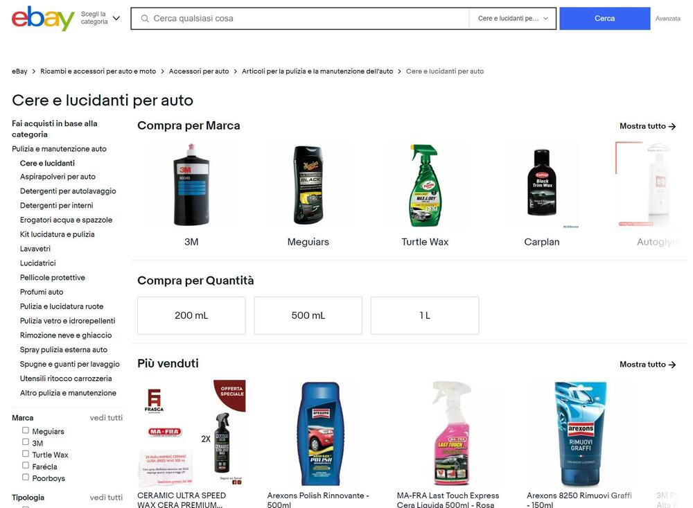 Facendosi delle idee riguardo del necessario per il proprio caso (dipende anche da fascia, allestimenti e stile della vettura) eBay è strumento principe, comodo e conveniente, per trovare online tutto quanto serva al lavaggio auto.