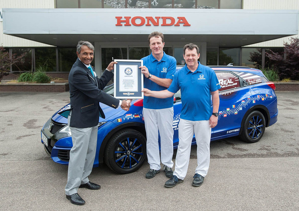 Honda entra a far parte del prestigioso Guinnes dei Primati. La casa nipponica, grazie alle prestazioni straordinarie della sua Tourer, è riuscita ad accrescere ulteriormente il proprio prestigio a seguito dei consumi davvero ridotti della propria autovettura, portata a toccare i 24 Paesi dell'Unione Europea, compiendo un totale di 13.498 km in appena 25 giorni. Il tutto impiegando una media di appena 2.8 litri per 100km.
