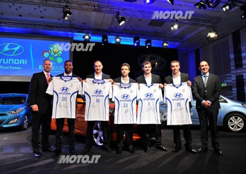 In qualità di sponsor ufficiale di UEFA EURO 2012, Hyundai ha messo in campo negli ultimi mesi numerose iniziative, dalla presentazione dei 5 Brand Ambassador del Team Hyundai (Italia: Giuseppe Rossi), al concorso “Be There with Hyundai” che ha premiato i migliori slogan proposti dai fan europei per la propria nazionale (per l’Italia: “Riempiamo l’Europa di Azzurro”). Il brrand coreano ha poi consegnato 366 vetture al comitato organizzatore degli Europei, attualmente impiegate per i vari spostamenti di delegazioni, ospiti e staff UEFA durante i Campionati UEFA EURO 2012.
