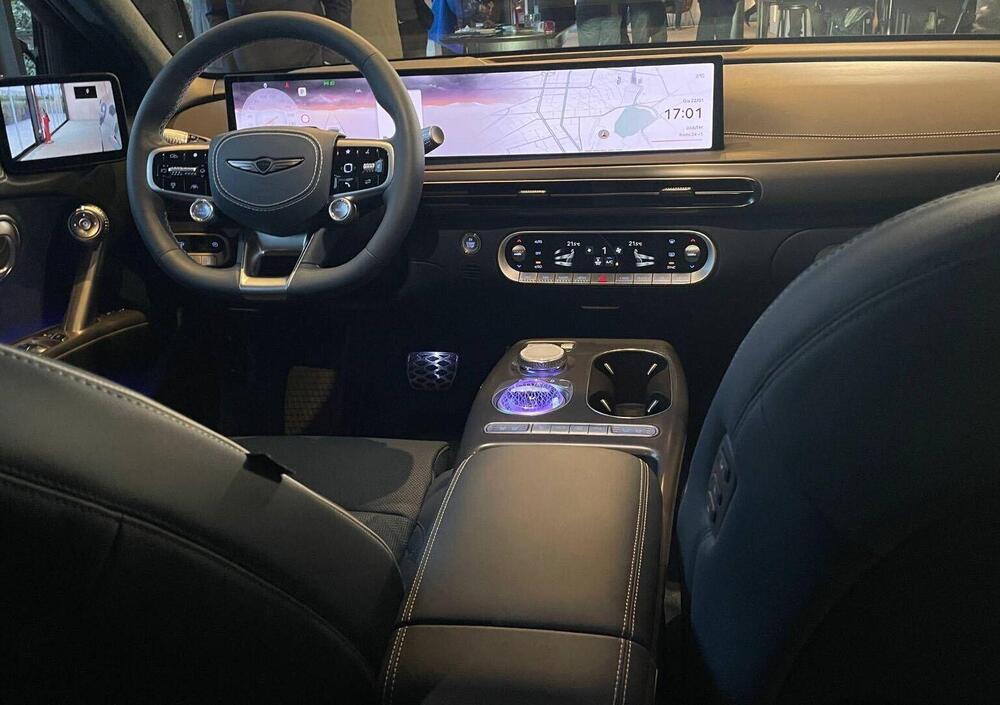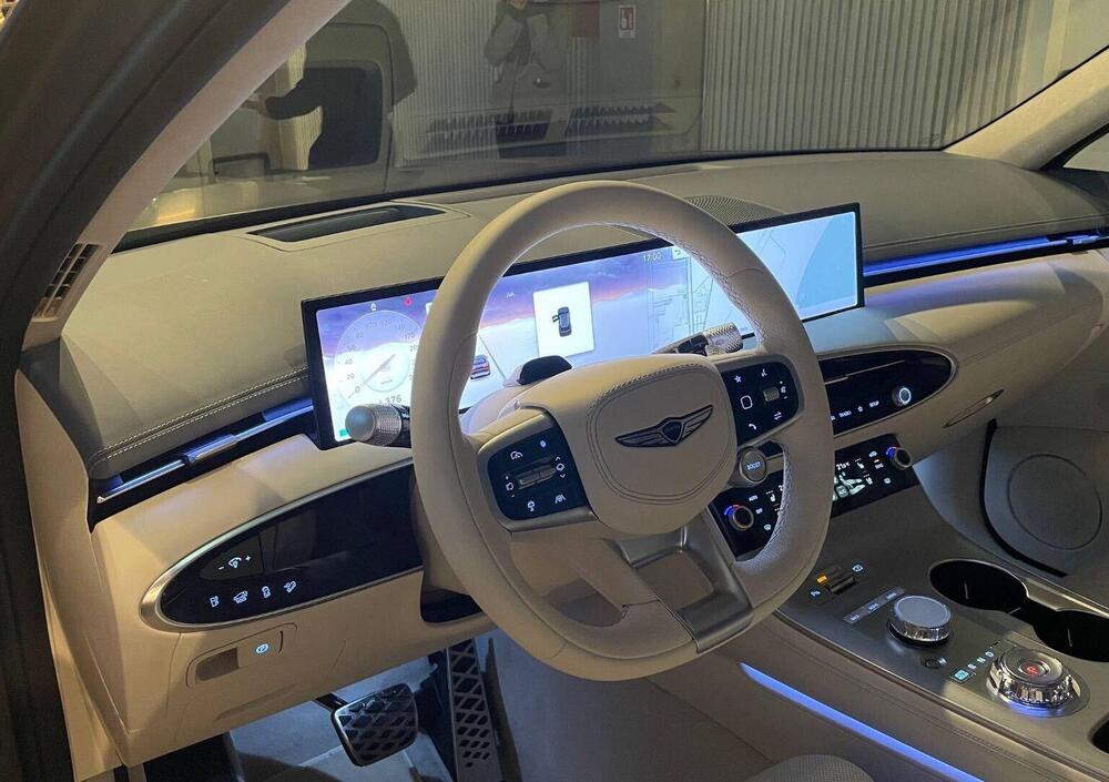 Sotto la carrozzeria, Genesis GV70 adotta un powertrain 100% elettrico bimotore con trazione integrale AWD. I due motori - uno all’avantreno e uno al retrotreno - erogano 245 CV ciascuno, per una potenza complessiva di 490 CV (360 kW) e una coppia massima di 700 Nm. Numeri che si traducono in prestazioni di rilievo: lo 0–100 km/h viene coperto in 4,4 secondi, senza mai compromettere la fluidità dell’erogazione.