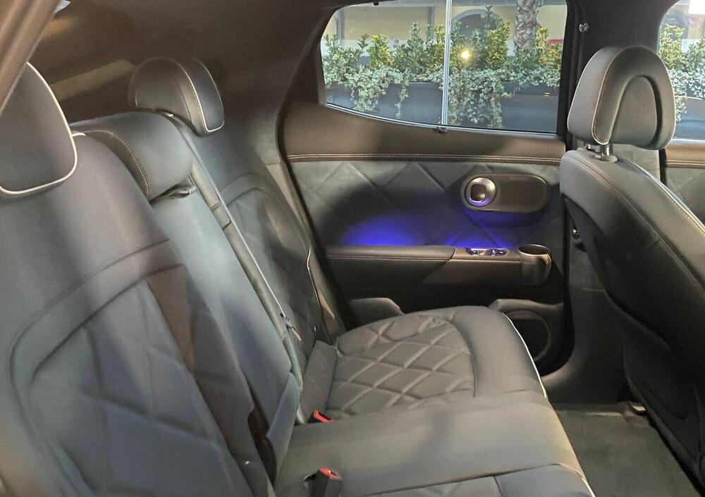 Il profilo laterale mantiene un equilibrio armonico tra sportività ed eleganza: la linea del tetto leggermente inclinata richiama il mondo delle coupé senza penalizzare abitabilità e funzionalità, mentre passaruota e modanature in tinta carrozzeria contribuiscono a un’estetica coerente e pulita. I cerchi in lega, disponibili da 19” a 21”, completano un insieme visivamente dinamico. Al posteriore, i volumi rimangono essenziali ma sofisticati, coerenti con il linguaggio Genesis e con l’identità elettrica del modello.