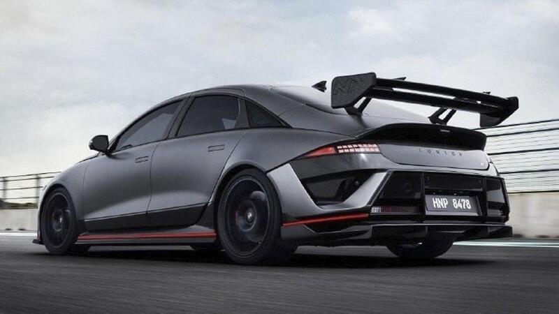 Il nuovo kit N Performance ruota attorno a un concetto: massimizzare il rendimento aerodinamico. Tutti i componenti sono costruiti in CFRP, cioè fibra di carbonio rinforzata con plastica, materiale leggero e rigidissimo. Il pacchetto include un lip spoiler anteriore, minigonne laterali, un diffusore posteriore più pronunciato e un gigantesco alettone sostenuto da due mastodontici supporti verticali. Un elemento che trasforma la silhouette della IONIQ 6 N, rendendola più simile a una vettura da track day che a una berlina elettrica.