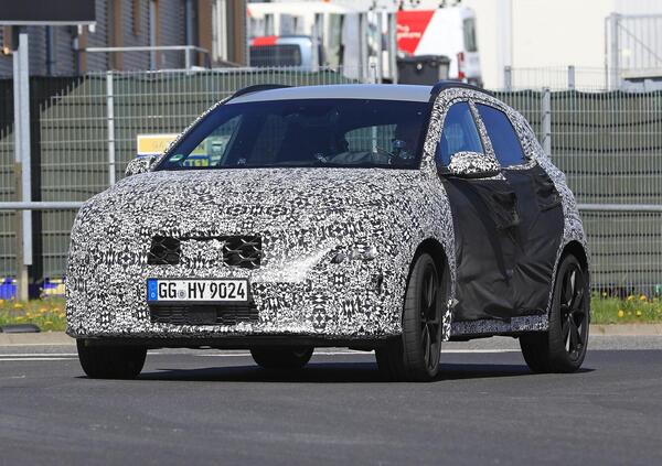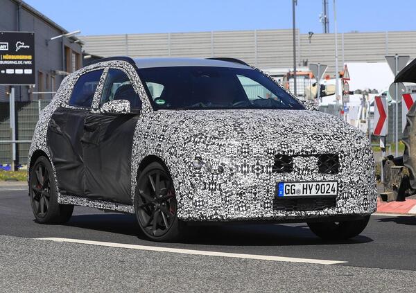 Sotto le grafiche per mascherarla si nascone una Kona molto simile alla generazione attuale: quindi, oltre al debutto dell'allestimento N, non ci aspettiamo grandi novità estetiche se non un piccolo restyling. La Kona N si fa notare per la griglia maggiorata nella parte bassa del paraurti anteriore, per l'assetto ribassato, i cerchi sportivi e, al posteriore, due enormi scarichi che fanno subito capire di che pasta è fatta. Sarà un crossover tanto pratico, quanto entusiasmante su strada, e anche l'abitacolo trasmetterà queste sensazioni: a tal proposito ci aspettiamo segua il programma di aggiornamenti dedicato alla i30 N.