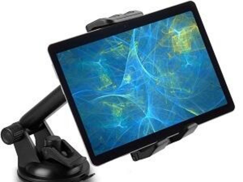 Ottimo per tutte le esigenze e compatibile con quasi tutti i tablet in circolazione, il supporto con ventosa regolabile da Kwmobile è un altro prodotto consigliato. Si caratterizza, innanzitutto, da un meccanismo che permette di orientare il dispositivo di 180 gradi e possiede anche un braccio con una misura variabile da 11 a 20,7 centimetri. Come da consuetudine per questo segmento di mercato, questo prodotto si aggancia al parabrezza - oppure un’altra superfice liscia - attraverso una ventosa molto di buona qualità. Il suo prezzo di vendita è di 25,99 euro, e beneficia della spedizione veloce di Amazon Prime.