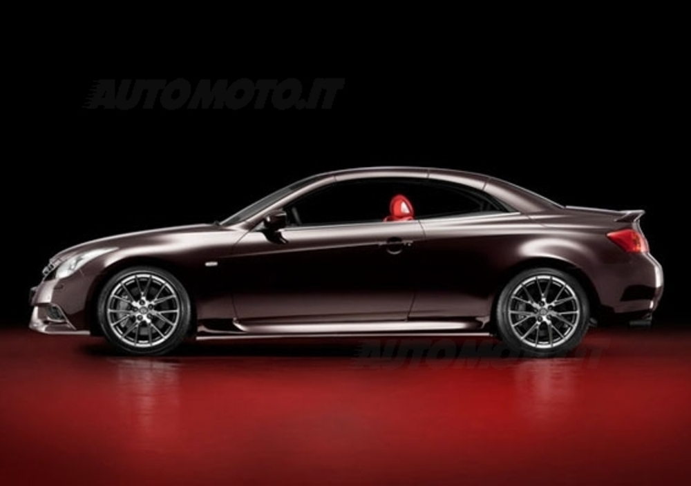 Ma andiamo con ordine partendo da propulsore: il V6 da 3.7 litri che sarà "ospite" sotto al cofano della G Cabrio Concept fa segnare +18 CV rispetto ai 320 originali e 374 Nm di coppia massima (prima 360). Si tratta di valori "importanti", frutto di uno scarico che riduce del 30% la contropressione dei flussi d'aria, migliorando così l'evaquazione degli stessi agli alti regimi. Allo stesso tempo è stato spostato in alto l'intervento del limitatore: dagli originali 7.000 il VQ blocca la sua corsa a 7.400 giri.