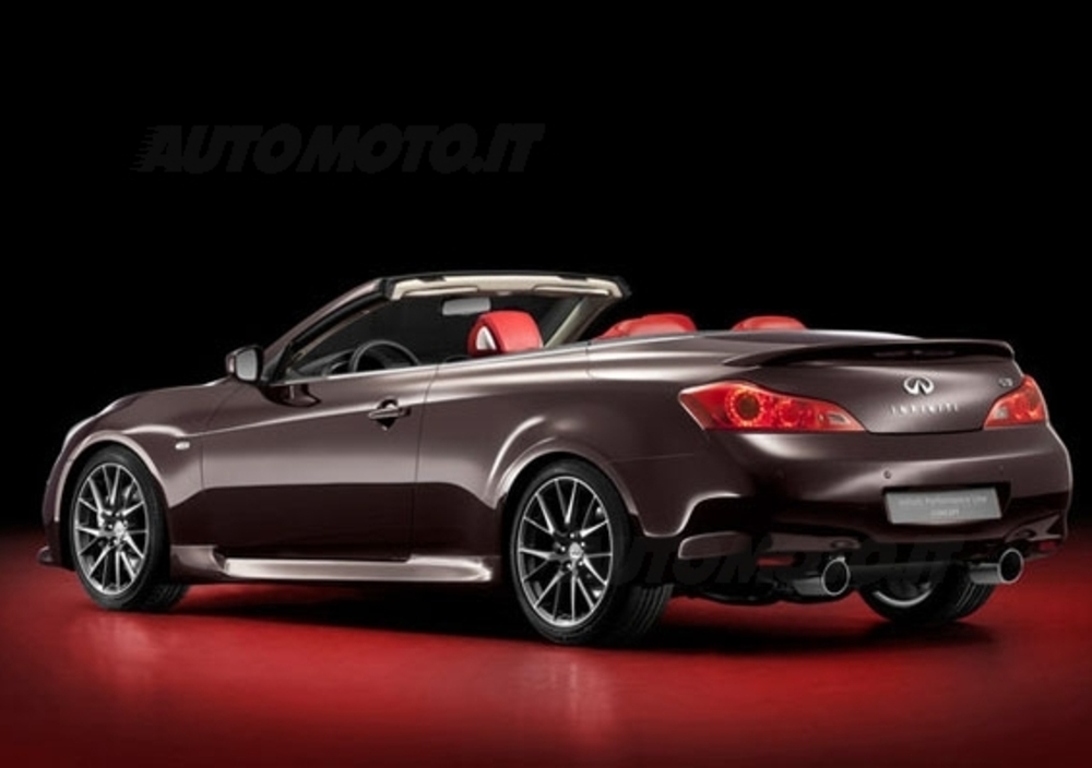 Esposta nella nuova tinta Malbec Black, la Infiniti IPL G Cabrio Concept che si vedrà a Parigi propone interni in pelle rossa Monaco Red oltre al classico hard-top elettrico che completa la procedura di scopertura o copertura in 25 secondi.