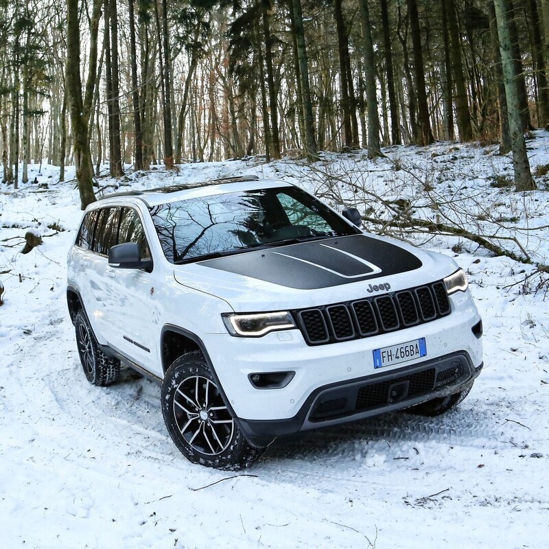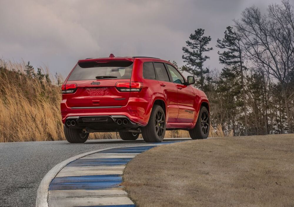 La Grand Cherokee “esagerata” si riconosce per i passaruota in tinta carrozzeria, cofano dotato di doppio estrattore d'aria, quattro terminali di scarico, la griglia frontale a sette feritoie affiancata da fari bi-xeno adattivi circondati da una cornice a LED e impreziositi da uno sfondo in nero lucido. Completano l'allestimento i nuovi cerchi con finiture in titanio da 20", sotto i quali risaltano le pinze gialle dei freni.