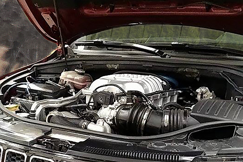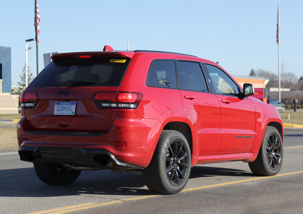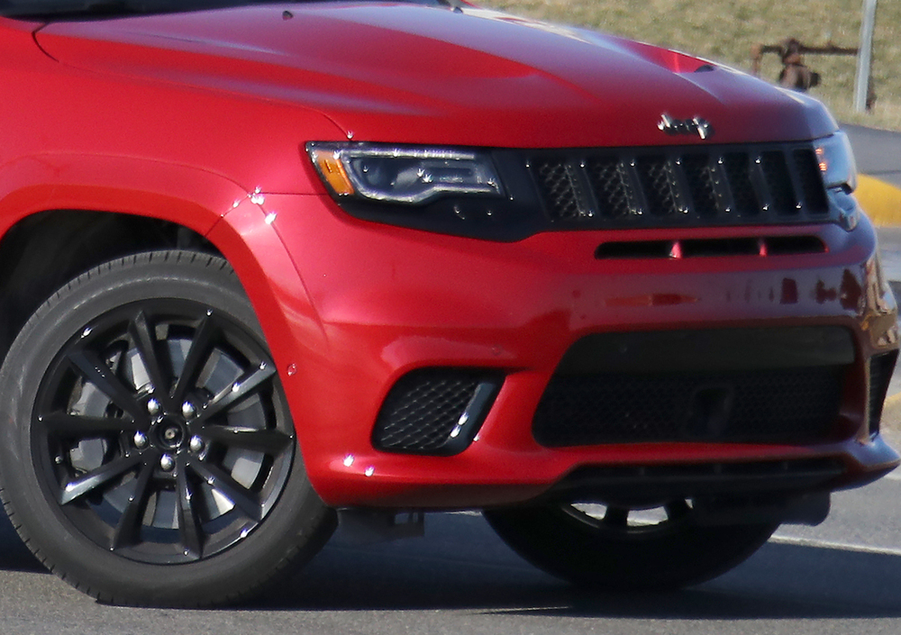 Here we are with interesting pictures of the upcoming Jeep Grand Cherokee Trackhawk, caught showing off its HellCat engine before its rumored NYIAS debut. Thinking about SRT version of the Grand Cherokee, the only visible exterior changes are an exaggerated rear diffuser, and 86'd fog lights. Sources tell us to expect also quad exhaust tips.