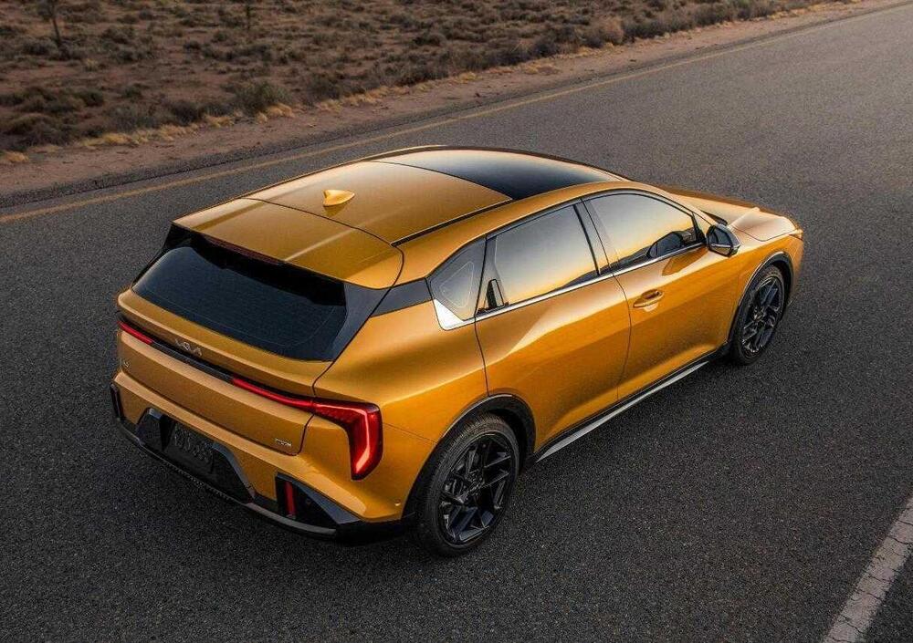 La parte frontale si distingue per fari geometrici a LED ispirati al SUV elettrico EV9, una calandra nera arricchita da elementi cromati e un cofano quasi piatto. Le fiancate sono scolpite, con maniglie posteriori nascoste nel montante C e passaruota neri che si connettono visivamente al sottoporta. Il posteriore, più spigoloso, ospita luci a LED sottili che si estendono sul portellone e un paraurti con elementi neri lucidi a effetto diffusore.