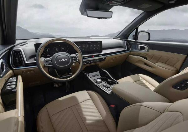 Internamente la Kia Sorento 2024 proporrà uno schermo da 12,3 pollici per l'infotainment, delle bocchette del clima più piccole (ma ugualmente performanti) e un'illuminazione ambientale di lusso.