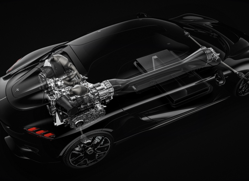 Nel Gemera, il Dark Matter è montato sull'asse anteriore all'interno del sistema denominato "Bulldog". Opera in sinergia con il motore a combustione interna posteriore, un V8 da 5 litri che sviluppa 1.500 CV (1.119 kW). I due propulsori sono collegati attraverso la trasmissione Light Speed Tourbillon Transmission, creando un sistema ibrido altamente sofisticato. Questa configurazione consente di ottimizzare la distribuzione dei pesi, implementare la trazione integrale, massimizzare l'efficienza in diverse condizioni di guida e gestire in modo intelligente la potenza combinata di quasi 2.300 CV e il costo complessivo dei due motori è stato calcolato in circa 370.000 euro.
