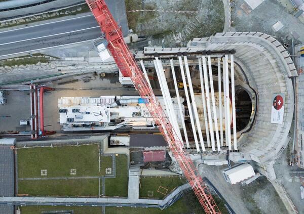 Parallelamente, nel cantiere di Göschenen (Uri), un altro consorzio, composto da Implenia Schweiz AG e Frutiger AG, ha avviato una seconda TBM Single Shield con un diametro di 12,225 metri e un motore da 5.250 kW. Il consorzio aveva già completato, nell’aprile 2023, lo scavo del tunnel di accesso settentrionale (Lot 243) utilizzando una TBM gripper Herrenknecht da 7,03 metri di diametro, denominata Carla.