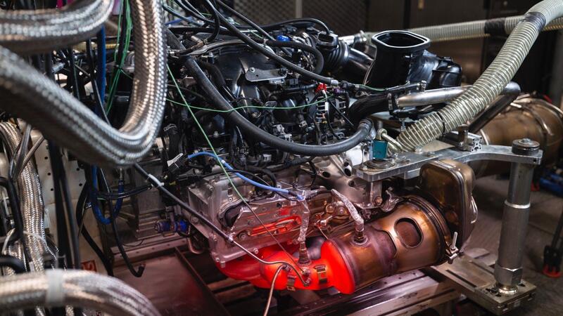 Il motore della GT3 messo a banco, come qui riportato in foto, ha anche già simulato 22.000 ore di uso stressante in “pista su vari percorsi” proprio per esaudire senza difficoltà i desideri di velocità tipici, del suo possessore che la utilizza volentieri nei tracciati di tutto il mondo.