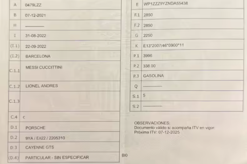 La protagonista della notizia è una Porsche Cayenne GTS Coupé immatricolata nel 2021 e utilizzata da Messi durante la sua ultima stagione al Barcellona. Secondo le informazioni pubblicate insieme all’annuncio di vendita, l’auto è stata registrata originariamente in Spagna e presenta una documentazione ufficiale che certifica la proprietà del campione argentino. Il SUV, oggi custodito in Germania, ha percorso poco più di 22.000 chilometri ed è descritto in condizioni eccellenti, con soltanto normali segni d’utilizzo. L’auto viene proposta tramite la piattaforma SBX Cars e potrebbe raggiungere una valutazione intorno alle 100.000 sterline, cifra che riflette non solo le caratteristiche tecniche ma soprattutto la provenienza esclusiva.