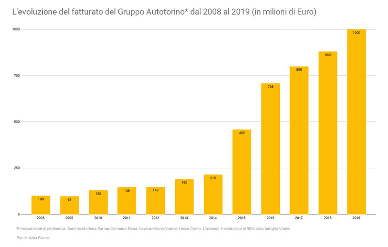 Non sono pochi i casi di aziende cresciute a dismisura negli ultimi anni. Una di queste è il Gruppo Autotorino che nel 2008 fatturava 100 milioni di euro contro gli 862 del 2018. L’espansione è continuata nel 2019 per un valore complessivo provvisorio di oltre un miliardo di euro.