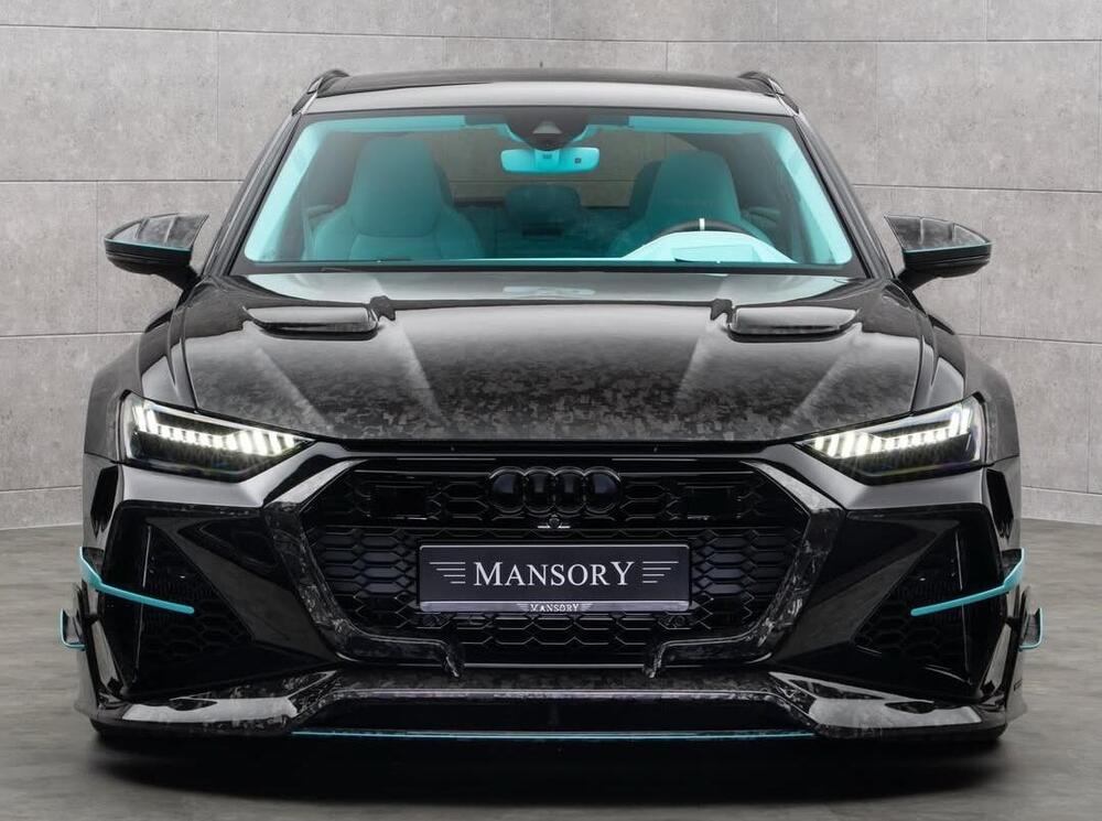 Come da tradizione Mansory, l’estetica della RS6 Avant non è timida. La carrozzeria si affida a numerosi elementi in fibra di carbonio a vista: paraurti ridisegnati, splitter anteriore, minigonne elaborate, cofano ventilato e diffusore posteriore accentuano l’aggressività e l’identità visiva.