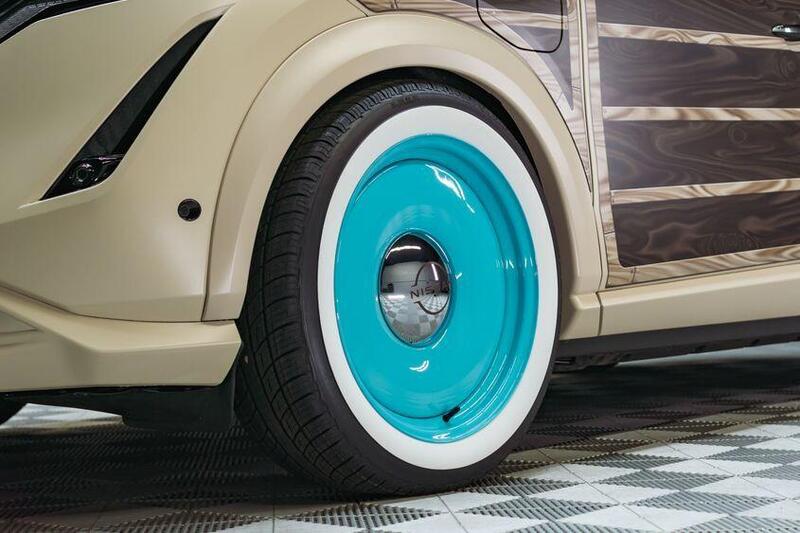 Ebbene, in occasione del SEMA 2023, Nissan ha deciso di avvicinare questi due termini con la concept Woody Surfwagon: ecco una fiancata in legno, da cui il nome, chiaro rimando a un periodo storico in cui l'uso del legno sulle Wagon era particolarmente diffuso - gli Anni '50. E non è tutto, perché ci sono anche dei cerchioni pieni con gomme a fascia bianca.