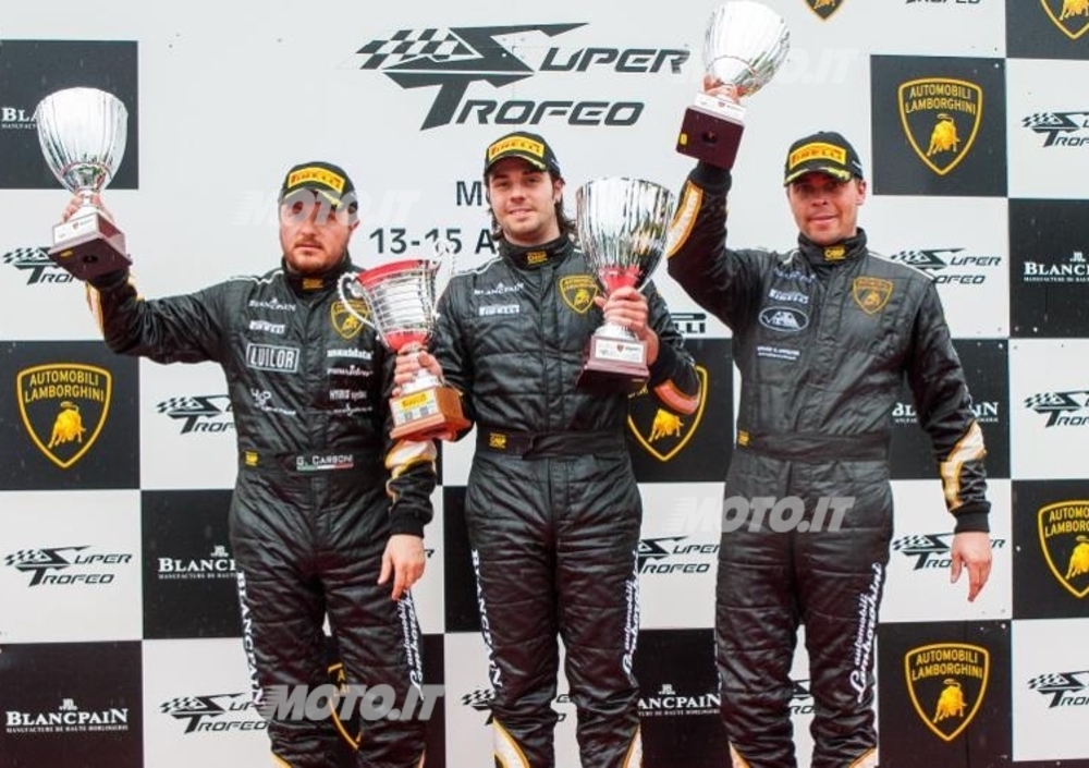 La seconda e la terza posizione sono state molto combattute, con un duello che ha coinvolto Gianluca Carboni ed il Campione 2011 Cedric Leimer, che hanno tagliato il traguardo separati da uno scarto marginale. Più sensibile invece la distanza che ha separato il terzetto di testa dal resto della corsa: Tiff Needell aveva inizialmente un buon passo, che è poi calato nel corso della gara, facendolo scivolare dalla terza alla sesta posizione, mentre il suo compagno di squadra Mario Fasanetto si è aggiudicato la quinta posizione. Il Lamborghini Blancpain Super Trofeo tornerà in scena a Silverstone il 2 e il 3 giugno.
