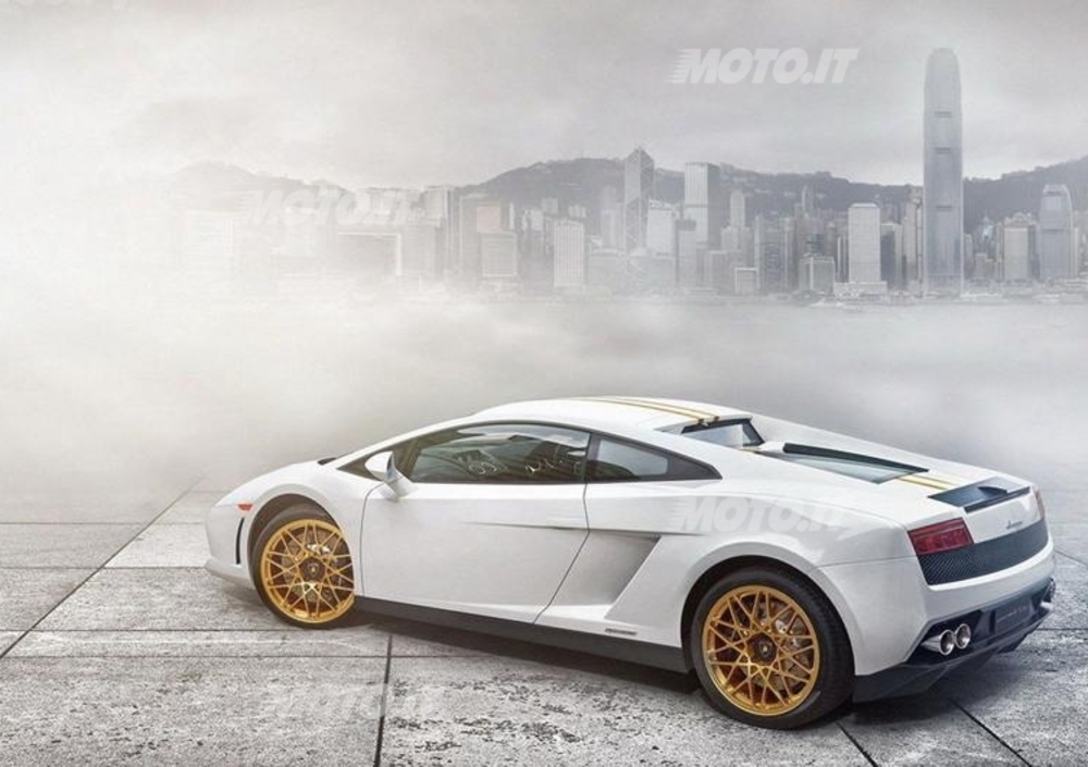 Denominata Gallardo LP 550-2 HK 20th Anniversary Edition, la sportiva del Toro presenta una colorazione esterna in Bianco Monocerus spezzata al centro da due bande dorate che percorrono la vettura per tutta la lunghezza dal cofano fino alla coda. Stessa tonalità anche per i cerchi, di tipo Cordelia a 20 razze al cui centro campeggia il logo del costruttore di Sant'Agata Bolognese.