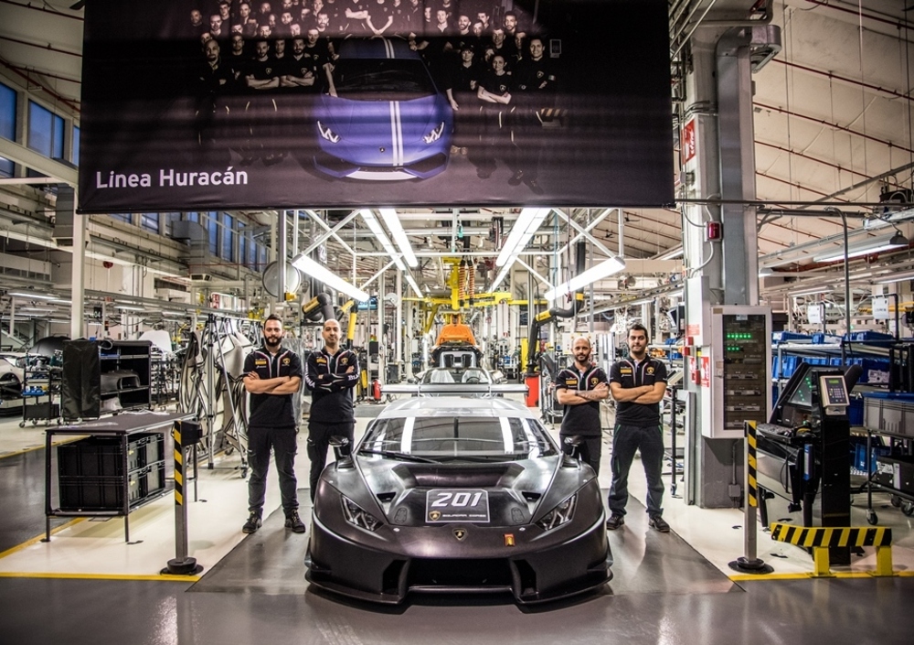 La vettura numero 201 è una Huracan GT3 uscita dalla linea di produzione di Sant’Agata Bolognese lo scorso 18 gennaio. Sia la Huracán Super Trofeo, sia la Huracán GT3, seguono lo stesso percorso delle Lamborghini Huracán di serie. Trattandosi di modelli da competizione, vengono seguiti lungo ogni stazione di montaggio da tecnici specializzati e qualificati di Lamborghini Squadra Corse, per garantire la massima cura nell’assemblaggio.