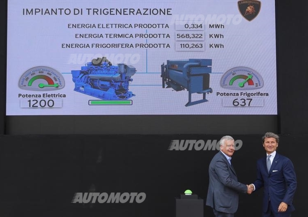 Tutti questi passi si completano con l’inaugurazione dei nuovi impianti di trigenerazione e teleriscaldamento, svoltasi il 6 luglio 2015 presso lo stabilimento di Sant’Agata, con cui Lamborghini ha conseguito la certificazione CO2 neutrale per la sede storica, prima azienda a ricevere l’ambito riconoscimento da DNV GL (Det Norske Veritas) dalle mani di Luca Crisciotti, amministratore delegato. Un obiettivo che andrà consolidato anche dopo l’ampliamento dello stabilimento in progetto nei prossimi anni necessario per dare il via alla produzione del terzo modello della gamma Lamborghini, come giustamente fa notare Winkelmann. «Nel 2015 abbiamo raggiunto il 25% di riduzione della nostra carbon footprint, le nostre emissioni nocive» sottolinea l’AD Lamborghini, «pur mantenendo inalterato il DNA delle nostre vetture».
