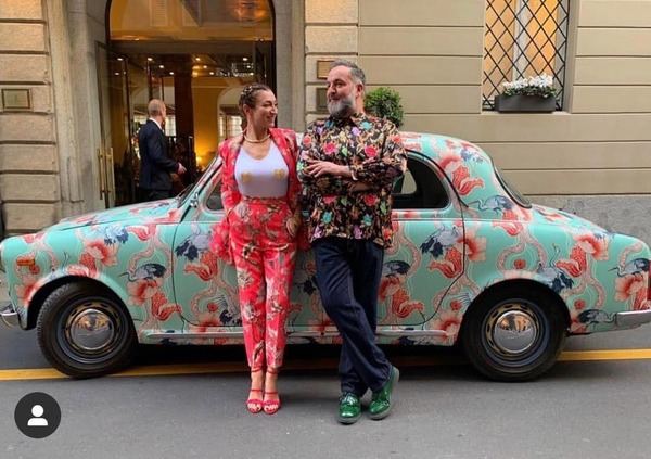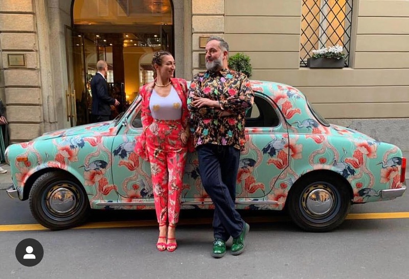 Il tutto è culminato in una passerella nel quadrilatero della moda per accompagnare il designer e la stilista Elisabetta Franchi al lancio di una capsule collection di abiti, anch’essa derivata dai motivi delle carte da parati di Guidarelli.