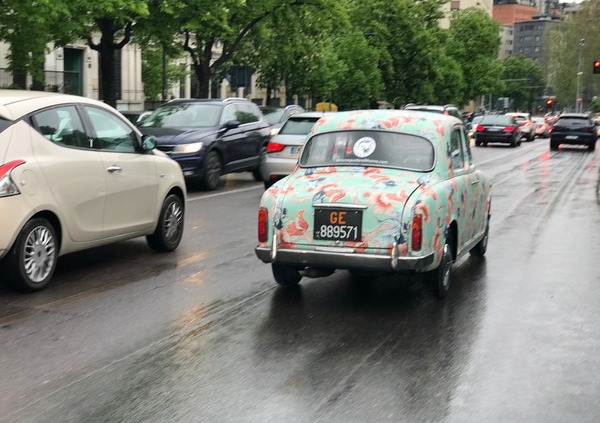 E’ un peccato che un’idea così simpatica finisca con la Design Week e l’auto ritorni, come se nulla fosse successo grazie al “gioco” del wrapping, al suo colore azzurro originale. E, infatti, non succederà perché la bellissima e originale livrea accompagnerà Liliana Oliosi e Nunzia Chiapperino, il duo delle Lancette, alla ventesima edizione del Rallye des Princesses, una gara di regolarità a tappe in auto d’epoca per sole donne che si terrà tra Parigi e Saint Tropez a inizio giugno.