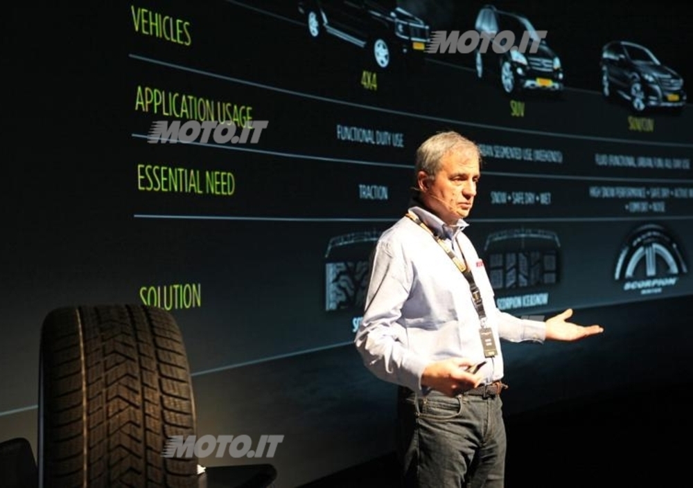 «Il nuovo Pirelli Scorpion Winter è stato sviluppato appositamente per le vetture SUV, un mercato in crescita non solo per vendite ma anche per evoluzione dei prodotti. 15 anni fa i modelli erano pochi e quando si pensava ad una vettura di questa categoria il pensiero andava alle fuoristrada, alle jeep, in generale a macchine scomode e particolarmente specialistiche. Oggi il settore delle SUV si è avvicinato a grandi passi verso il mondo dell'automobile "tradizionale" con una proposta che vede modelli di tutte le taglie e potenze. La stima, per il 2015, è quella di arrivare a 150 modelli firmati da 47 brand automobilistici distinti. Sostanzialmente tutte le Case hanno o avranno un SUV in listino.»