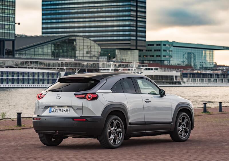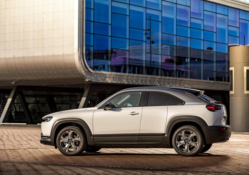 Ma le particolarità di questa nuova auto elettrica non si esauriscono di certo con la batteria. La MX-30 è un’auto diversa da tutte le sue concorrenti anche per le scelte di stile - sì, le porte posteriori sono controvento come sulla RX-8 - ma anche per tutto ciò che riguarda la dinamica di guida. Che, in effetti, si differenzia da quella di altre elettriche per una serie di aspetti peculiari. Così come per quanto riguarda gli interni e l’utilizzo dei materiali.