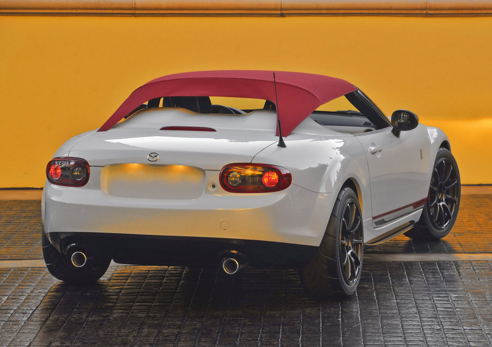 Dotata di capote in color rosso granatina realizzata da Haartz Corporation in grado di ripiegarsi in 12 secondi, la MX-5 Spyder nasce dalla collaborazione tra MNAO Design e Magna Car Top Systems, e si caratterizza per una carrozzeria in color bianco Stratosphere e per i cerchi in lega a cinque razze ad Y da 17 pollici firmati ADVAN RS (serie AO48) in color Gun Metallic gommati Yokohama 225/45.