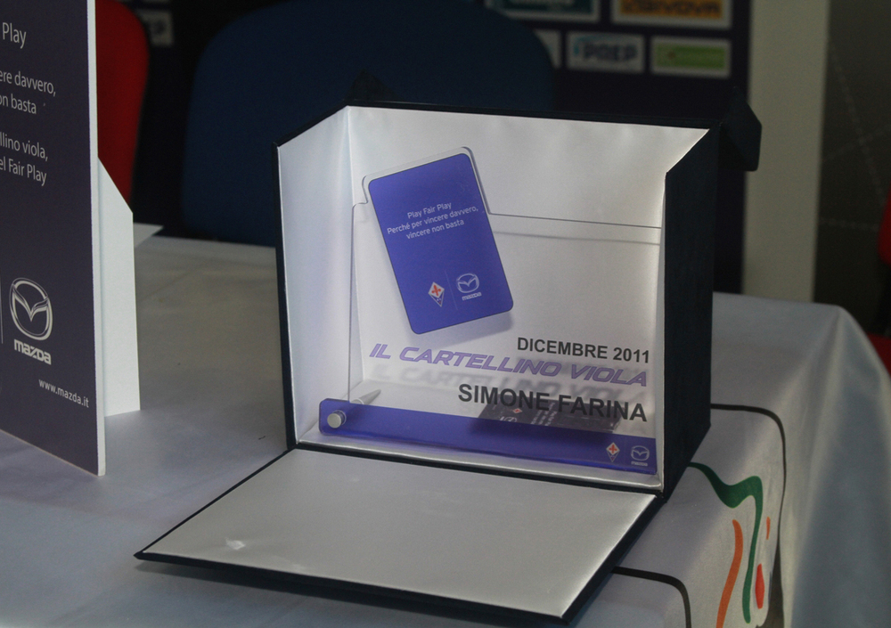 Andrea Fiaschetti, Direttore Marketing di Mazda Italia e giurato del Cartellino Viola ha cosi commentato il conferimento del riconoscimento : «Premiare Simone Farina vuol dire riconoscere importanti valori di lealtà, il suo gesto cosi “normale” ma anche significativo ci aiuta a diffondere il fair play ed è un valido esempio soprattutto per chi ama e segue il calcio. A Simone va il nostro “Cartellino Viola di Dicembre 2011” e la possibilità di concorrere al premio finale Fair Play Mazda ovvero in nostro nuovissimo CX-5 una vettura “fair” nei confronti dell’ambiente, dei consumi e nelle emissioni. Simone ha vinto senza aver giocato in campo perché ha saputo, cosi come noi di Mazda, sfidare le convenzioni e farci credere nella possibilità di un calcio diverso e soprattutto pulito.»