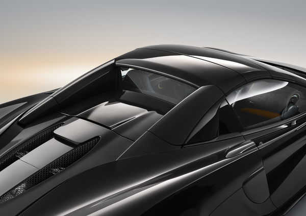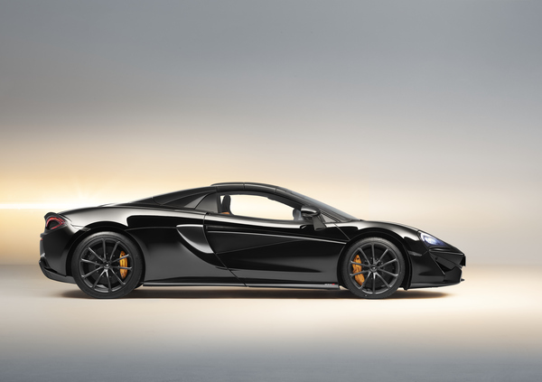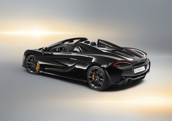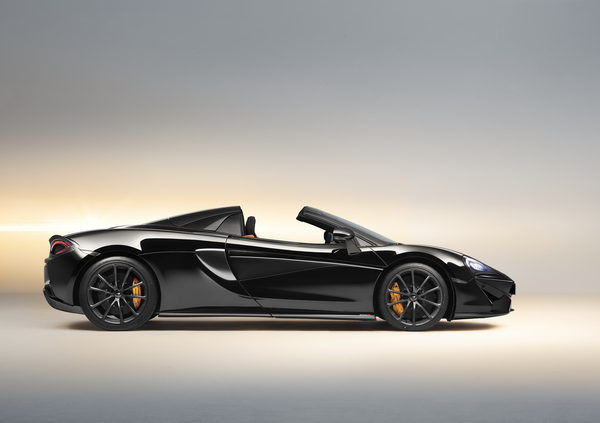 Le foto diffuse da McLaren ritraggono la Design Edition 4, con carrozzeria in tinta Onyx Black, tetto ripiegabile nella stessa nuance, pinze freno in McLaren Orange e interni in Alcantara Carbon Black e pelle Nappa McLaren Orange.